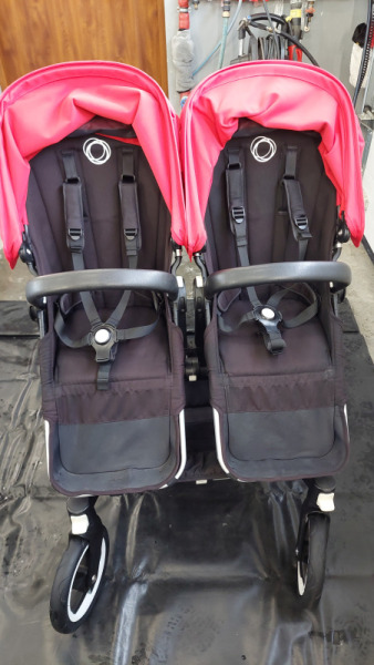 • odplamianie, pranie tapicerki wózka dziecięcego podwójnego,