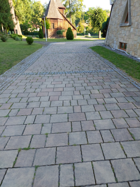 Dzisiaj przedstawiamy Wam jedną z większych realizacji, którą nasza firma wykonała w ostatnim czasie. Naszym zadaniem było umycie kostki brukowej wokół kościoła, a także zasypanie jej piaskiem. Kostka była mocno zabrudzona, przez wiele lat nieczyszczona.
